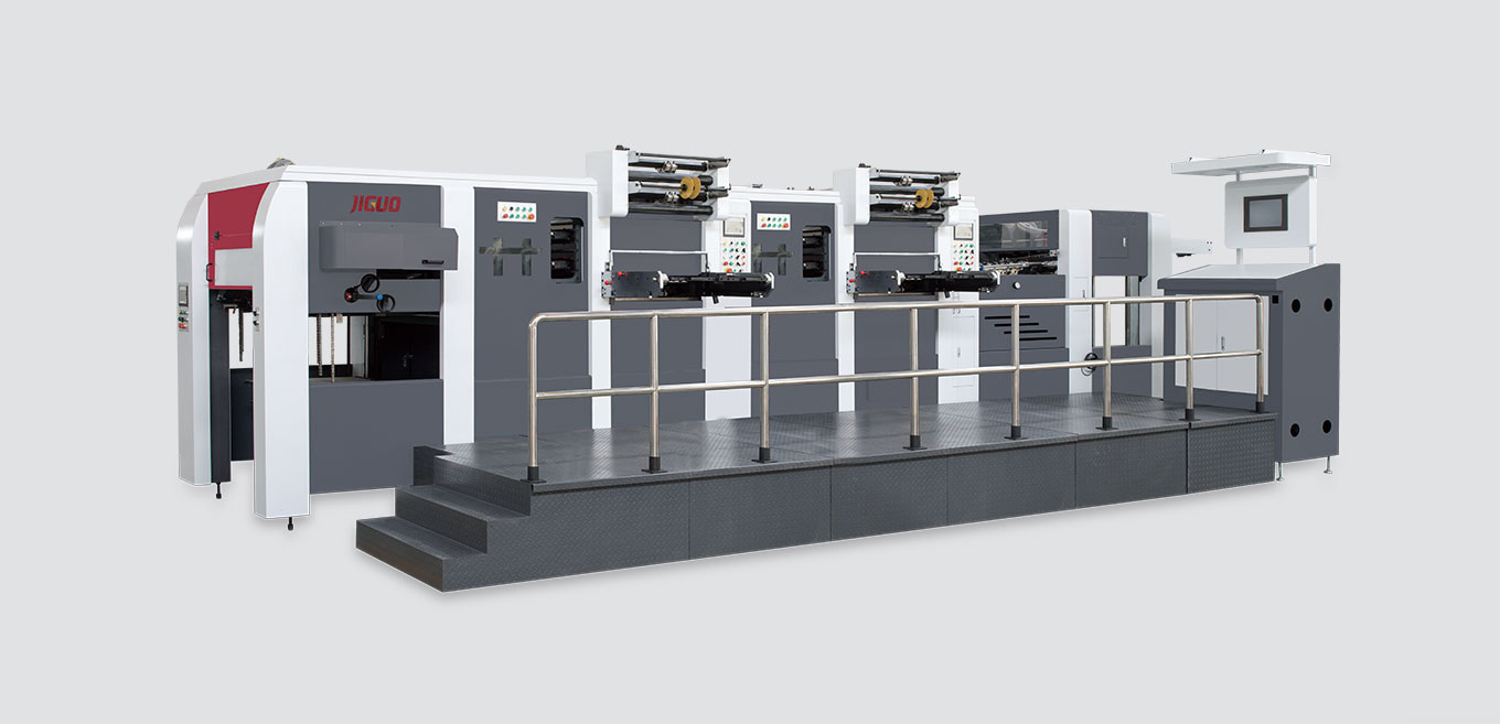 ●以数字“2”开头的“一体机”是一条长长的联动线,通过多机联动让纸张在机器上只走纸一次就完成“烫金”“深压纹”“模切”“清废”等多种工艺。